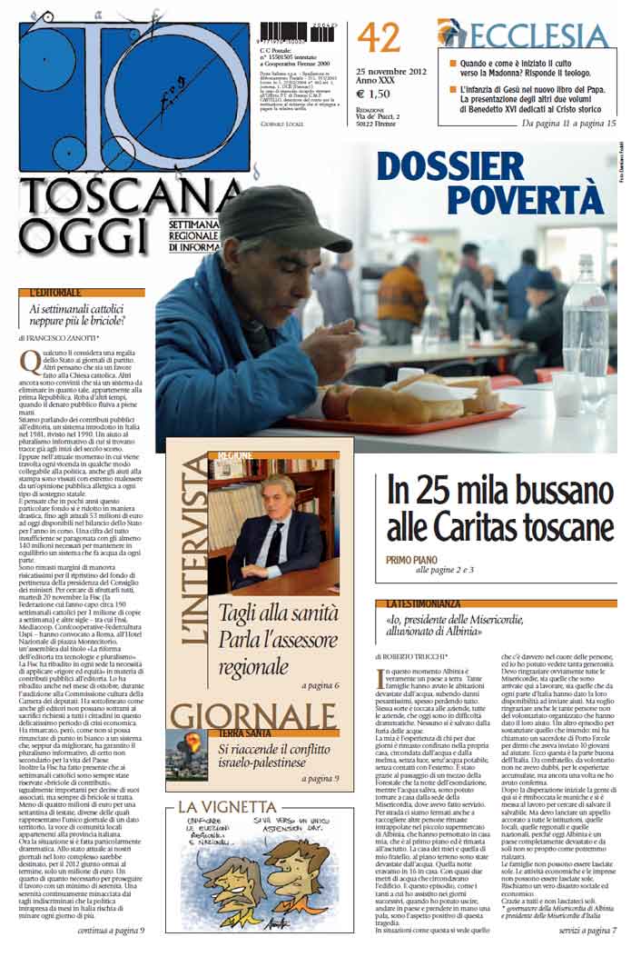 “Dossier povertà. In 25mila bussano alle Caritas toscane”, è il titolo di apertura del fascicolo regionale di Toscana Oggi. All’interno, la testimonianza di Roberto Trucchi, presidente delle Misericordie d’Italia: “Io, presidente delle Misericordie, alluvionato di Albinia”.
