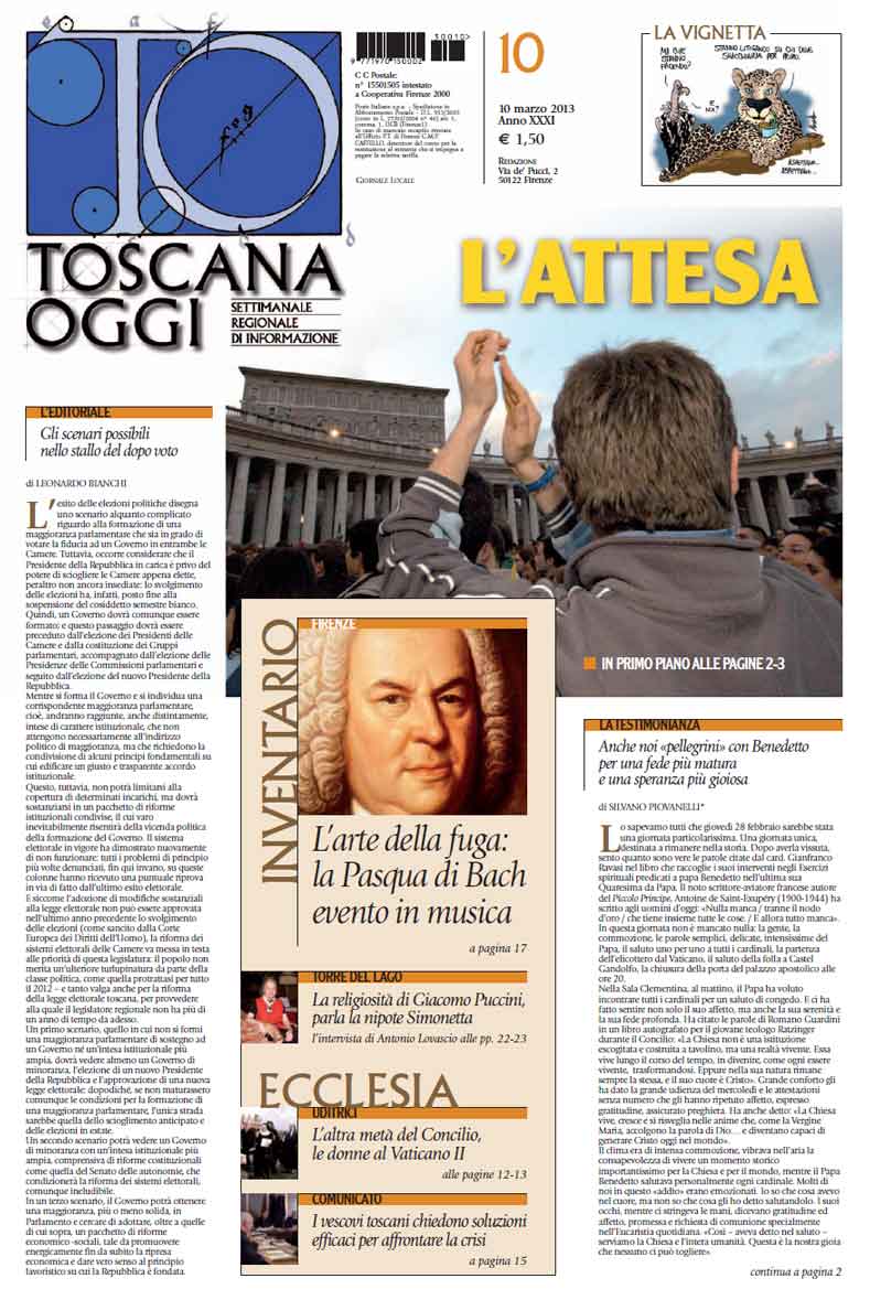 Il ritratto del primo vescovo della diocesi di Arezzo-Cortona-Sansepolcro, attraverso le sue sfide pastorali. La Voce di Arezzo-Cortona-Sansepolcro, il fascicolo diocesano di Toscana Oggi, rende omaggio a Giovanni D’Ascenzi con uno speciale. Tra i contenuti speciali, anche il racconto fatto dal Presule del 23 maggio 1993, una giornata storica a fianco di Papa Giovanni Paolo II. Il fascicolo generale di Toscana Oggi dedica la sua apertura all’attesa per l’elezione del nuovo Pontefice. In questo numero, anche l’analisi della situazione politica post voto con l’intervista al direttore generale del Censis, Giuseppe Roma che dice: “Il voto a Grillo? Non è solo protesta”.