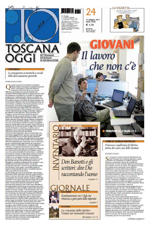 La Voce di Arezzo-Cortona-Sansepolcro, il fascicolo diocesano di Toscana Oggi, propone uno speciale dedicato a Domenico Bornigia e padre Abele Conigili. Due figure di vescovi diverse tra loro, unite dallo stesso spirito conciliare. Cinquant’anni fa l’avvicendamento alla guida della Chiesa di Sansepolcro. “Giovani, il lavoro che non c’è” è il titolo d’apertura del fascicolo generale di Toscana Oggi. All’interno l’inchiesta su “La crisi dell’Europa. Senza il lavoro va in pezzi anche l’Unione”. Per la serie “Gli alberi della fede”, tappa alla “Quercia della Madonna di Lucignano”.