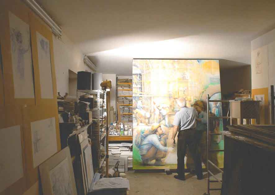 Questo, invece, il commento di Serena Nocentini, direttrice dell’Ufficio Arte Sacra della diocesi: “Consapevole e abile interprete della ricca tradizione pittorica novecentesca, Camaiti sembra evocare – in questo suo grande pastello – la monumentalità e la potenza narrativa della pittura murale di impronta sociale e popolare, nata con i grandi muralisti messicani e poi diffusasi anche in Europa. E se il giganteggiare delle figure in primo piano chiama in causa l’autorevolezza della tradizione rinascimentale (così come anche l’arco romano in rovina, traccia tipica dell’iconografia cristiana, e simboleggiante la civiltà pagana in declino, si pensi all’Adorazione dei Magi di Leonardo da Vinci agli Uffizi), la luminosità dei colori, di quei gialli e di quei verdi squillanti, e la fitta trama delle impalcature che ‘salgono’ e si perdono nell’orizzonte non possono non richiamarci i vorticosi cantieri futuristi di Umberto Boccioni, ne La città che sale (1910) e, forse ancor più, ne La strada entra nella casa(1911 circa). Altra presenza ‘fondativa’, in quest’opera, è poi quella degli operai, presenza posata eppur eroica, tanto da farci pensare a quei Renaioli sull’Arno di Augusto Bastianini (1935 circa), oggi alla Galleria d’Arte Moderna di Firenze. Un’opera – quella di Camaiti – conscia, insomma, della tradizione che la precede ma che, con coraggio e salda padronanza della tecnica, si spinge a cercarne un’attualizzazione devozionale e sentimentalmente partecipe.”