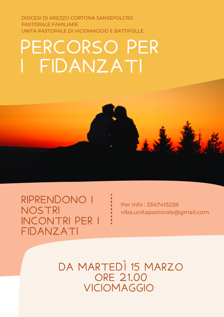 NotizieRiprendono gli incontri del percorso per i fidanzati1 Marzo 202228 Febbraio 2025 Da martedì 15 marzo, alle 21,00 a Viciomaggio, riprenderanno gli incontri, curati dalla Pastorale Familiare, del percorso per i fidanzati. Per info: 334 7415228 viba.unitapastorale@gmail.com condividi su
