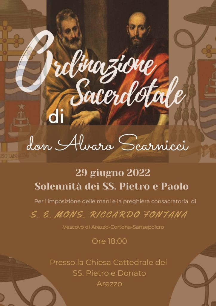 Mercoledì 29 giugno, ore 18,00 presso la Cattedrale, Alvaro Scarnicci riceverà l’Ordinazione sacerdotale per imposizione delle mani e la preghiera consacratoria di S.E. Mons. Riccardo Fontana.