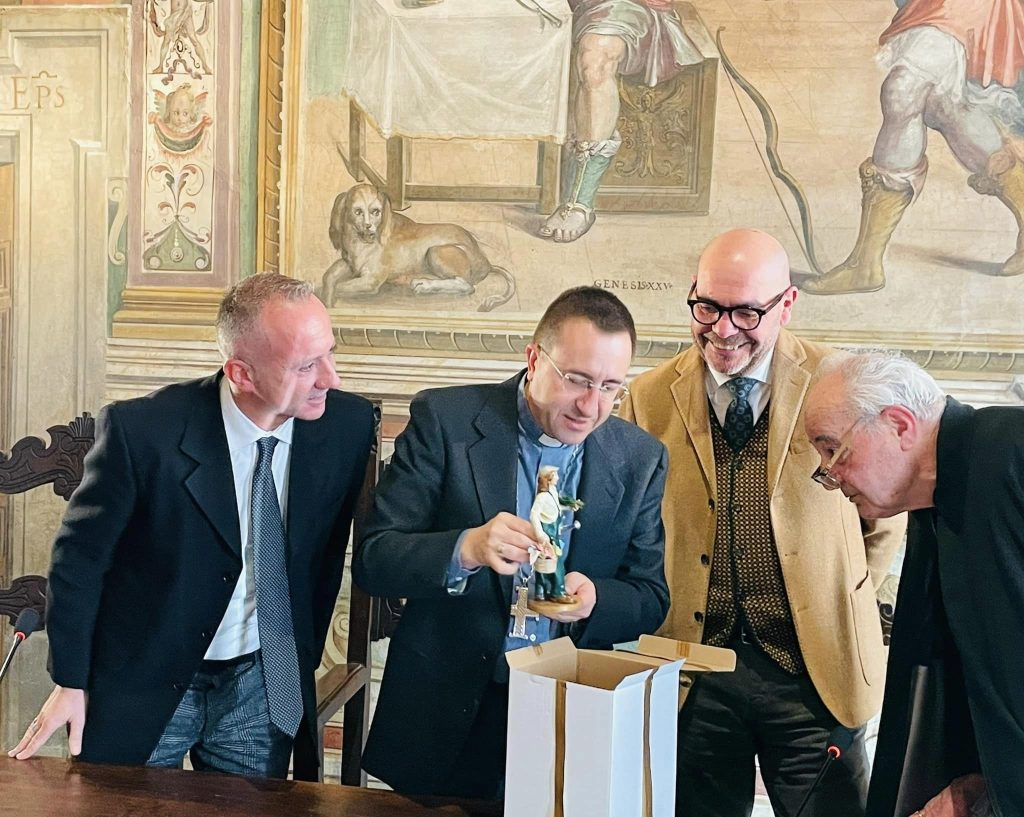 Confartigianato e Coldiretti consegnano al Vescovo Andrea la statuina del presepe 2022