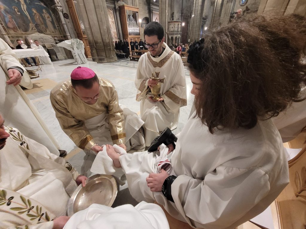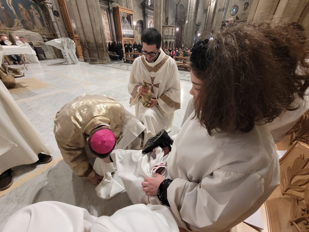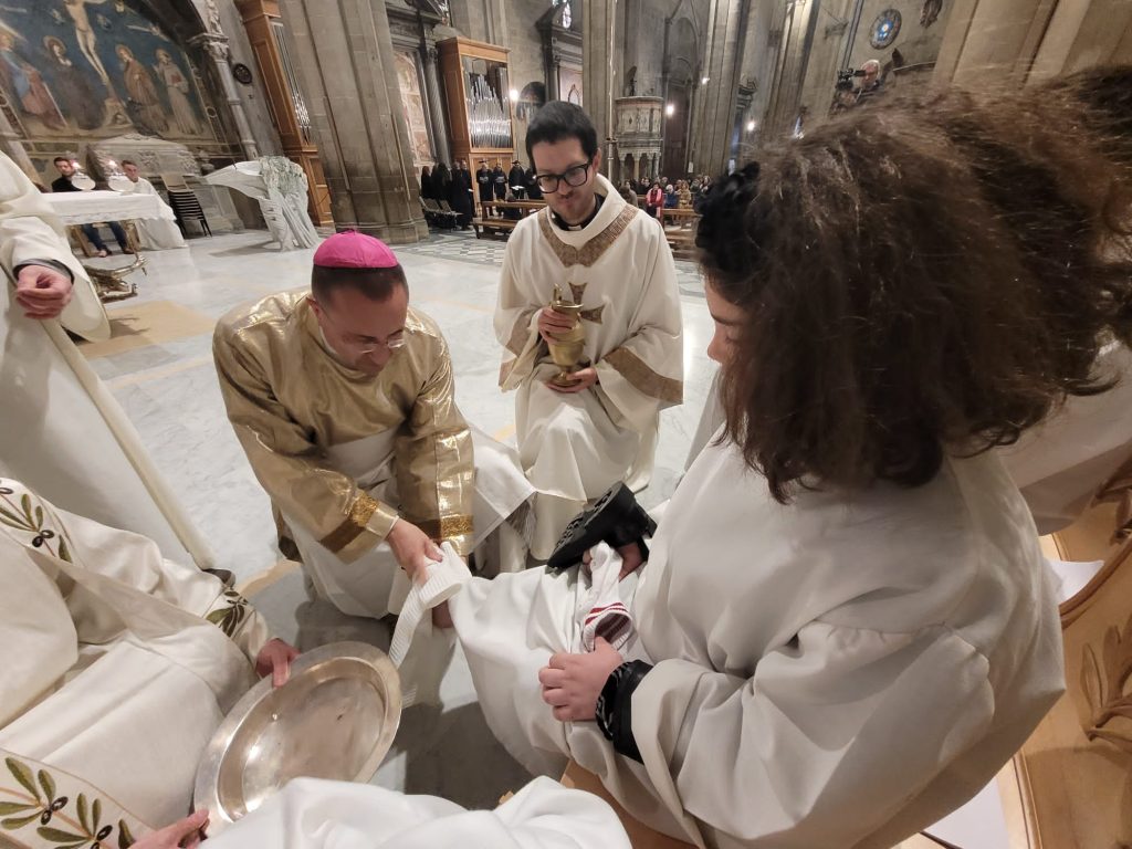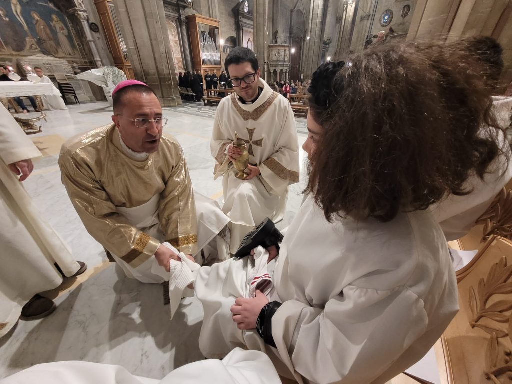 Viviamo questa intensa celebrazione in Coena Domini, memoria della Nuova Alleanza con Dio, del dono del sacerdozio ministeriale e della permanente presenza del Risorto nell’Eucaristia che ci viene raccontata nella scena dell’ultima cena nella lettera di Paolo ai Corinzi e nella scena della lavanda dei piedi nel vangelo di Giovanni. Sacerdozio, Eucaristia, Alleanza, Servizio… sono le coordinate di questa celebrazione e del momento che viviamo da contemporanei al dono di vita di Gesù, contemporanei attorno a quella tavola del pane e del vino donati e della lavanda dei piedi.