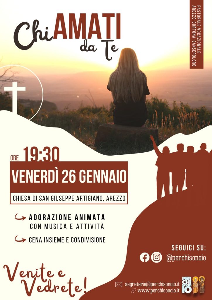 NotiziechiAMATI da Te15 Gennaio 202426 Febbraio 2025 Venerdì 26 gennaio, alle ore 19:30, la Pastorale vocazionale della Diocesi invita a un momento di preghiera e condivisione che si svolgerà presso la chiesa di San Giuseppe Artigiano in Arezzo. condividi su