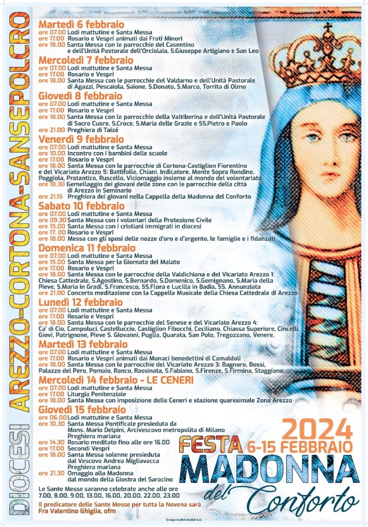 NotizieMadonna del Conforto 20241 Febbraio 202426 Febbraio 2025 Pubblichiamo il calendario con tutte le celebrazioni previste in occasione della novena e della Festa della Madonna del Conforto. condividi su