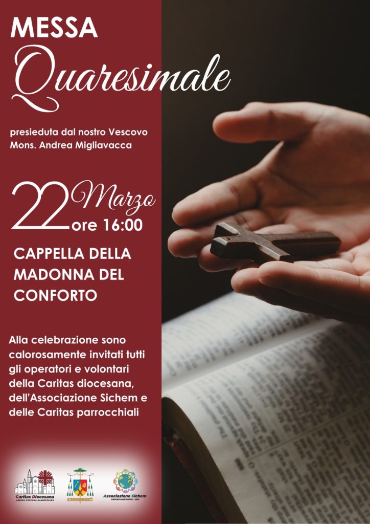 Venerdì 22 marzo alle ore 16, presso la Cappella della Madonna del Conforto, il Vescovo Andrea presiederà la CELEBRAZIONE QUARESIMALE per tutti gli operatori e i volontari della Caritas diocesana e dell’Associazione Sichem.