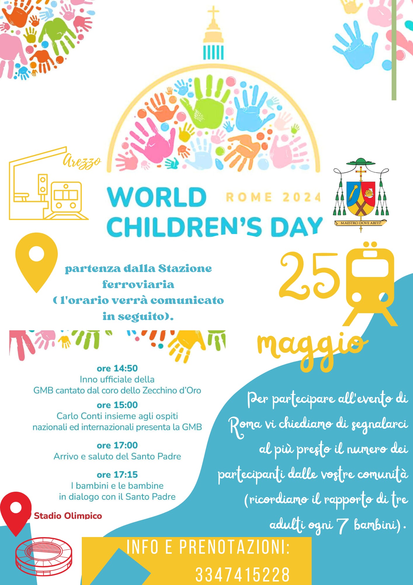 “Care bambine e cari bambini! Si avvicina la vostra prima Giornata Mondiale: sarà a Roma il 25 e 26 maggio prossimo. Per questo ho pensato di mandarvi un messaggio, sono felice che possiate riceverlo e ringrazio tutti coloro che si adopereranno per farvelo avere. Lo rivolgo prima di tutto a ciascuno personalmente, a te, cara bambina, a te, caro bambino, perché «sei prezioso» agli occhi di Dio (Is 43,4), come ci insegna la Bibbia e come Gesù tante volte ha dimostrato.” (Papa Francesco)