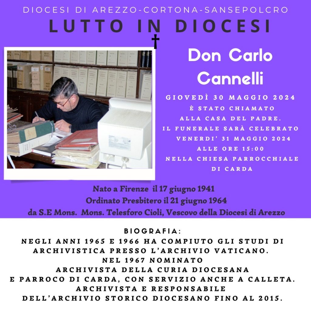 Si comunica che oggi, giovedì 30 maggio, il nostro caro DON CARLO CANNELLI è stato chiamato alla casa del Padre.