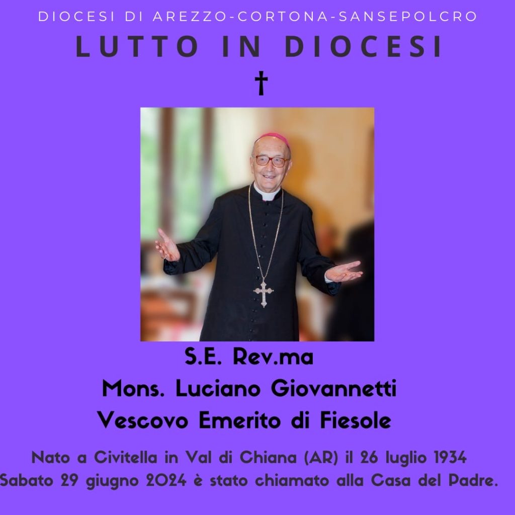 Il funerale sarà celebrato lunedì 01 luglio 2024 alle ore 15.30 nella Cattedrale di Arezzo.