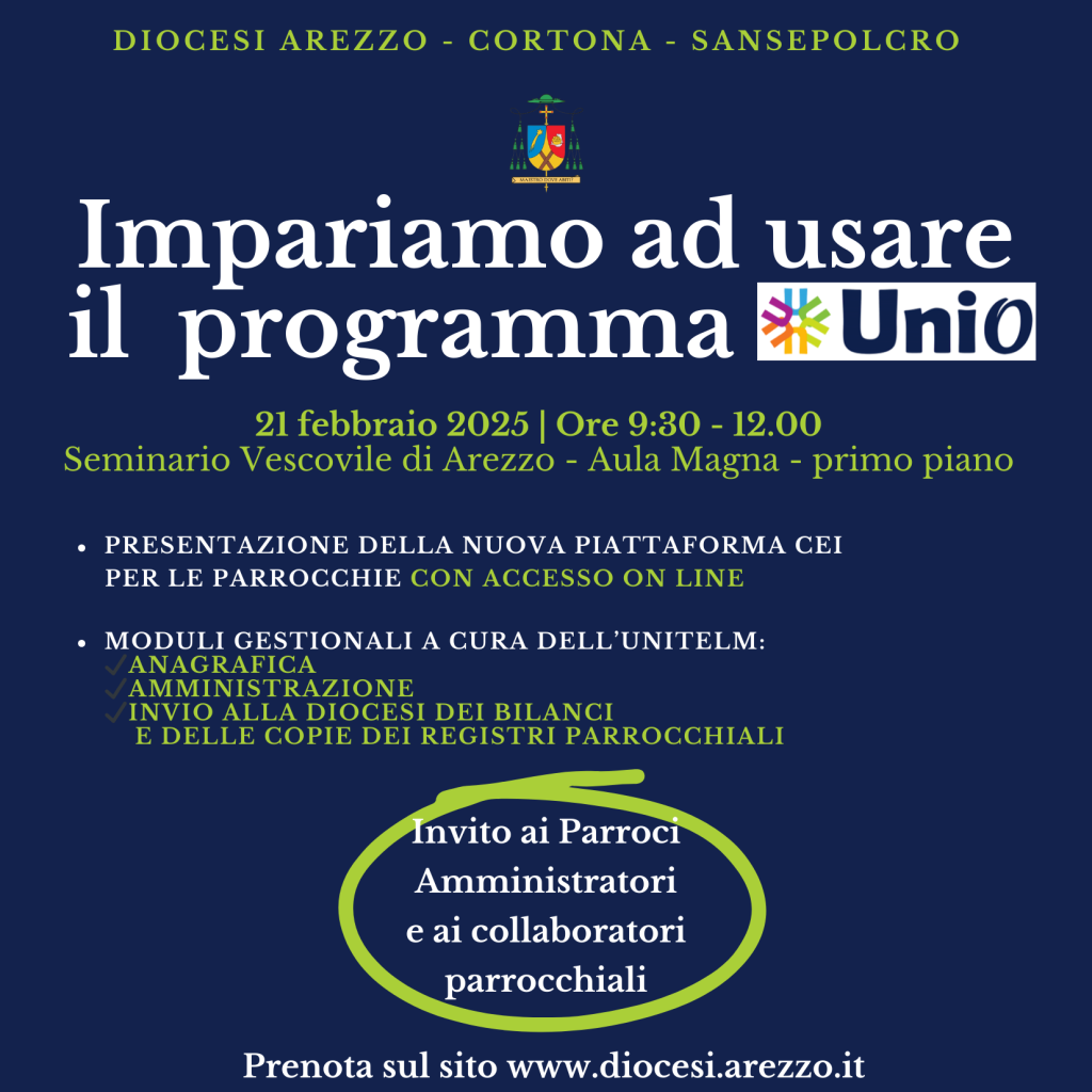 Venerdì 21 febbraio 2025 alle ore 9.30 in Seminario primo incontro di presentazione del programma UNIO.