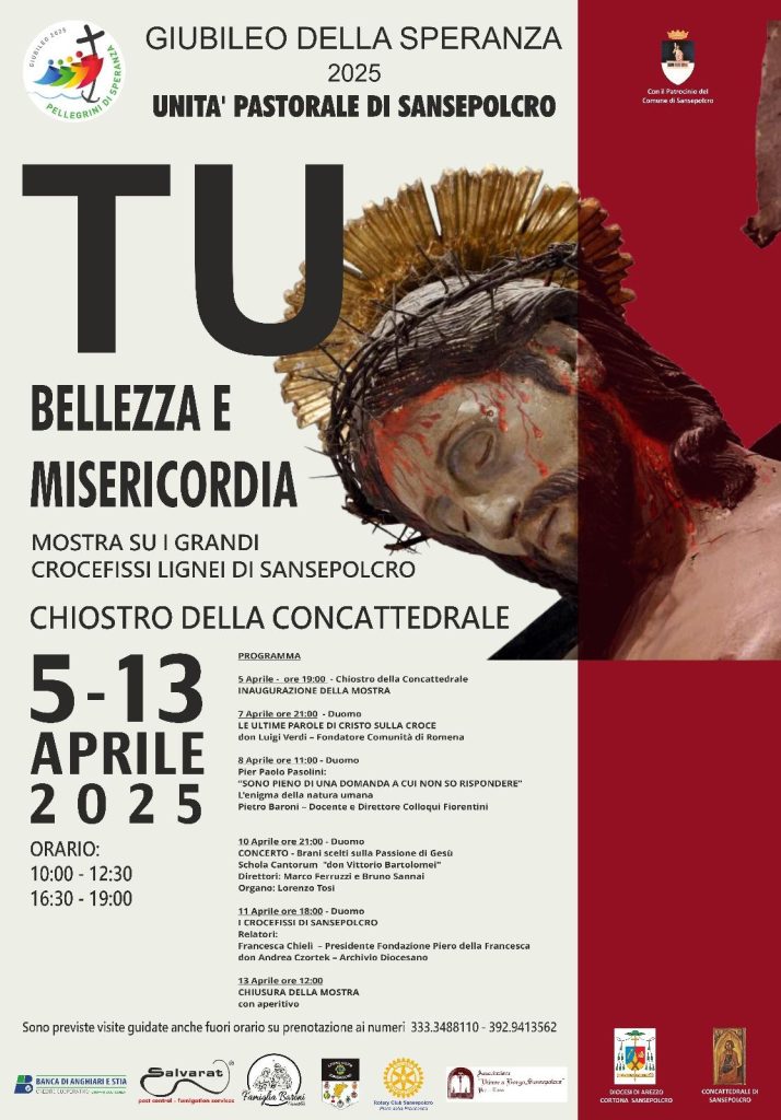 Questa bella iniziativa, che si inserisce nelle iniziative dell’anno giubilare e che rappresenta una sorta di preludio alla Settimana Santa, è organizzata dall’Unità Pastorale delle Parrocchie di Sansepolcro con il patrocinio del Comune e il contributo di varie realtà del territorio. Alla mostra, che sarà liberamente accessibile nei consueti orari di apertura del chiostro annesso alla Concattedrale, si accompagnano molti appuntamenti che fanno da cornice a questo progetto.