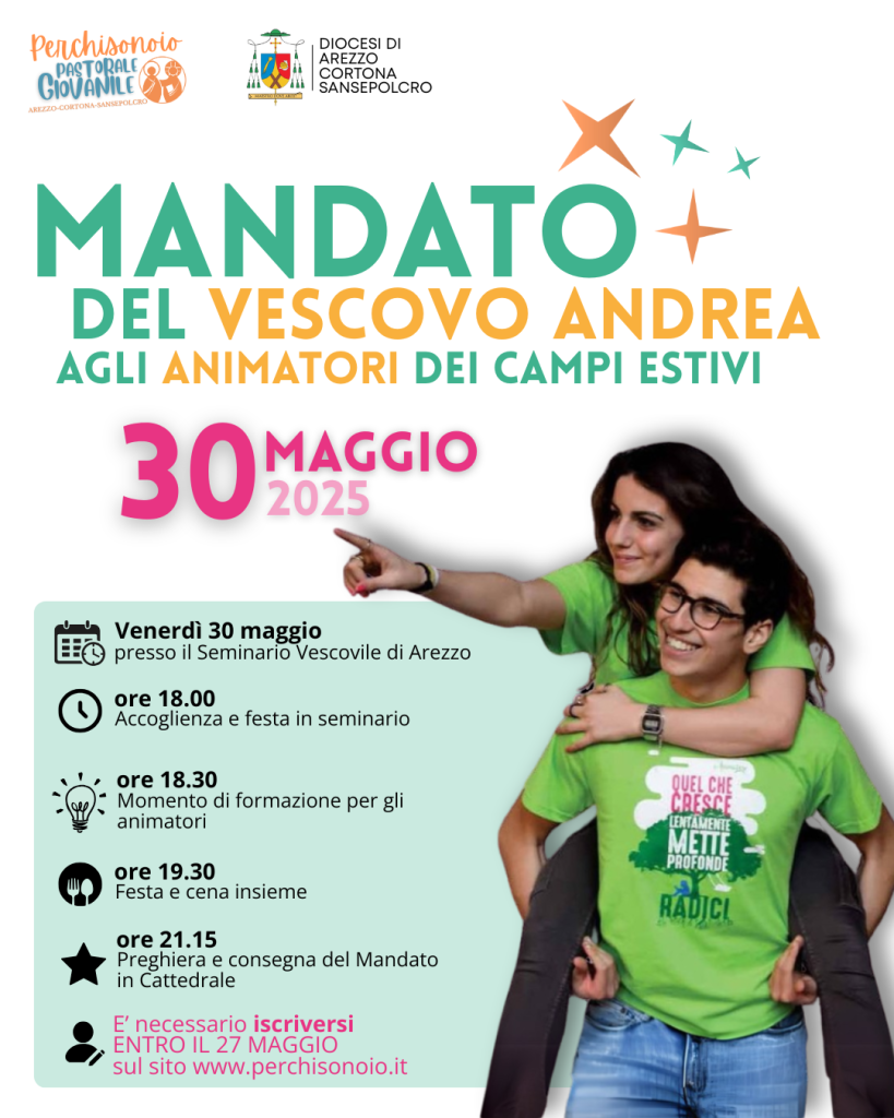 promosso dalla Pastorale Giovanile della Diocesi di Arezzo-Cortona-Sansepolcro. Un’occasione speciale per ritrovarsi, formarsi, fare festa e ricevere il Mandato che dà il via ufficiale all’estate dei campi!