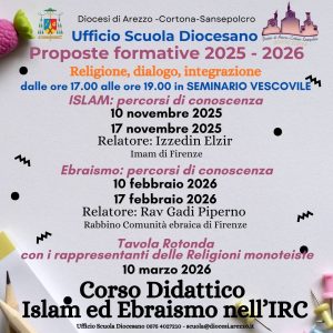 Il Corso Didattico Islam ed Ebraismo nell’IRC, dopo una serie di appuntamenti avviati lo scorso novembre, si conclude con un’intera giornata, prevista per martedì 10 marzo 2026.