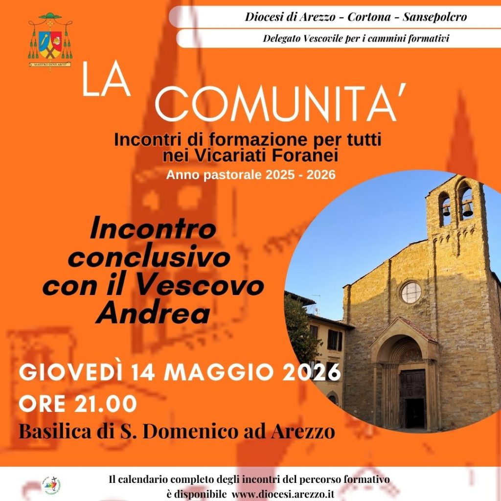 Mercoledì 14 maggio 2026 nella Basilica di San Domenico il Vescovo Andrea, con un momento conclusivo, alle ore 21.00 ci permetterà di riflettere sul cammino vissuto e sulle prospettive future che la nostra Diocesi dovrà affrontare.