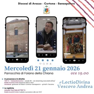 Nella Collegiata dei Santi Martino e Michele Arcangelo a Foiano della Chiana si terrà la quarta tappa del cammino delle Lectio del Vescovo Andrea. L’appuntamento è alle ore 19.00 in presenza, ma è possibile seguire la diretta. TeleSanDomenico TSD TV canale 85 – via streaming sul sito LIVE TSD Radio Incontri in blu frequenze 88.4 e 92.8 Facebook: @Diocesi di Arezzo-Cortona-Sansepolcro – @TsdTv […]