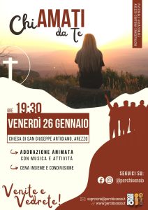 Venerdì 26 gennaio, alle ore 19:30, la Pastorale vocazionale della Diocesi invita a un momento di preghiera e condivisione che si svolgerà presso la chiesa di San Giuseppe Artigiano in Arezzo.