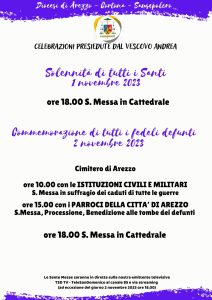 Si pubblicano gli orari delle celebrazioni previste per mercoledì 1º novembre e giovedì 2 novembre.