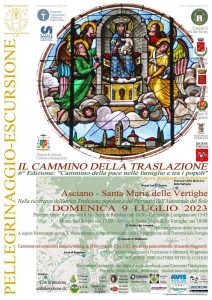 Sono aperte le iscrizioni al 6′ Cammino della Traslazione * ASCIANO – S. MARIA DELLE VERTIGHE * Domenica 9 luglio 2023, Cammino della pace nelle famiglie e tra i popoli. Per informazioni, iscrizione (10 Euro), scrivere a nicolameacci@gmail.com per Associazione Cammino Traslazione B.a.s. C.S.I. Il Cammino della Traslazione