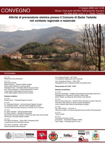 “Sabato 17 Giugno alle ore 11 presso il Museo Comunale di Badia Tedalda, il Dipartimento di Architettura dell’Università degli studi di Firenze presenterà i risultati degli studi fatti sul nostro territorio in merito all’attività di prevenzione sismica. Nell’occasione saranno presenti il Presidente di Regione Toscana, Eugenio Giani e il Presidente della Provincia di Arezzo, Alessandro […]