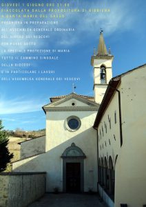 Giovedì 1 giugno ore 21:00. Fiaccolata dalla Propositura di Bibbiena a Santa Maria del Sasso. Preghiera in preparazione all’assemblea generale ordinaria del sinodo dei vescovi per porre sotto la speciale protezione di Maria tutto il cammino sinodale della Diocesi e in particolare i lavori dell’assemblea generale dei vescovi.