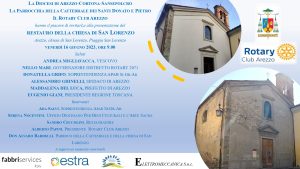 Venerdì 16 giugno 2023, ore 9.00, sarà presentato il restauro della chiesa di San Lorenzo in Arezzo, con gli interventi del Vescovo Andrea Migliavacca, Nello Mari, Governatore Distretto Rotary 2071, Donatella Grifo e Ada Salvi, per la Soprintendenza Apab Si-Gr-Ar, Alessandro Ghinelli, Sindaco di Arezzo, Maddalena De Luca, Prefetto di Arezzo, Eugenio Giani, Presidente della […]