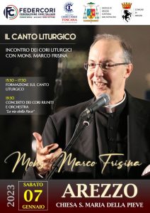 Sabato 7 gennaio 2023, presso la Chiesa di S.Maria della Pieve in Arezzo, Mons. Marco Frisina incontrerà i cori liturgici nel programma che segue: 15:30 – 17:30 Formazione sul canto liturgico 19:00 Concerto dei cori riuniti e orchestra “La via della pace”