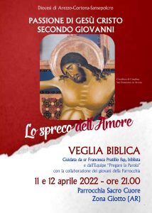 Veglia biblica guidata da sr. Francesca Pratillo nella parrocchia del Sacro Cuore di Arezzo, 11 e 12 aprile alle ore 21,00.