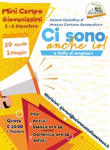 Mini campo giovanissimi (1-3 superiore) dal 30 aprile al 1° maggio a Gello di Anghiari con l’Azione Cattolica. Per info e iscrizioni: iscrizioni.giovani@azionecattolicaarezzo.it