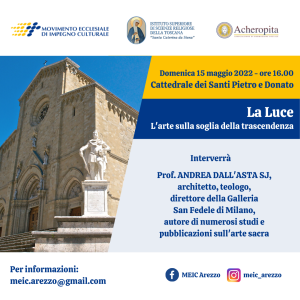 Domenica 15 maggio 2022 – ore 16.00 Cattedrale dei Santi Pietro e Donato interverrà il Prof. ANDREA DALL’ASTA SJ, architetto, teologo, direttore della Galleria San Fedele di Milano e autore di numerosi studi e pubblicazioni sull’arte sacra.