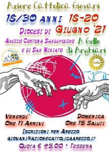 Questo Campo Giovani vedrà la collaborazioni di due Diocesi, la nostra di Arezzo-Cortona-Sansepolcro e quella di San Miniato. I nostri giovani potranno conoscere una realtà diversa dalla loro, per 3 giorni, nella casa di Gello, vivranno insieme questa esperienza che sarà accompagnata da tematiche a loro vicine come l’enciclica “Fratelli tutti”, il Ddl Zan e […]