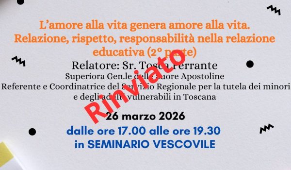 L’incontro del 26 marzo 2026 con Suor Tosca Ferrante è rinviato… Read More